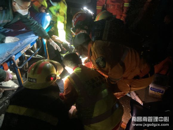 1月4日晚上20点30分,在沪昆高速梨温路段K494南昌方向,发生一起大型货车追尾大巴车事故,导致货车驾驶室变形、大巴车发动机损坏,驾驶员被卡驾驶室、大巴车54人滞留高速,路面车流量巨大,随时存在二次事故隐患。省交投集团南昌南车辆救援大队玉山中队快速出击,成功将驾驶员解除出来,并护送50余人平安下高速。
