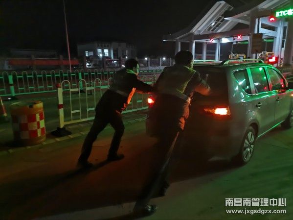 这天,进贤收费站工作人员收到了来自司乘人员的求助,晚上20时许,一辆车稳稳地停在超宽车道出口,当班工作人员见状便上前询问其情况。经了解,该司机从南昌往浙江方向,距离该站1公里多的地方,仪表盘上的警示灯突然开始闪烁,司机选择就近从该收费站驶离高速,进行检查车辆,没想到刚到进贤收费站,车辆就自动熄火,再也无法行驶,被迫停在了收费车道。司机看见工作人员,立即寻求帮助,该站工作人员一起帮忙将车子推到收费站出口安全地方,并通过助推启动了车辆。
