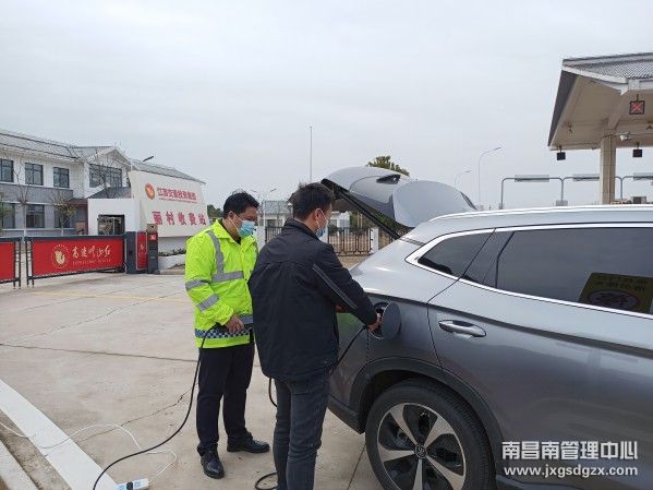 当天上午11点左右,该站工作人员像往常一样在道口巡视,发现一辆小车在该站内广场10米处停了下来,工作人员急忙上前询问。经了解司机驾驶新能源电动汽车从湖南返程浙江,因沿途高速服务区停靠车辆较多未能及时充电,车子快没电了,想就近下高速到收费站寻求帮助,可没想到还没驶出收费站就无法继续行驶了。