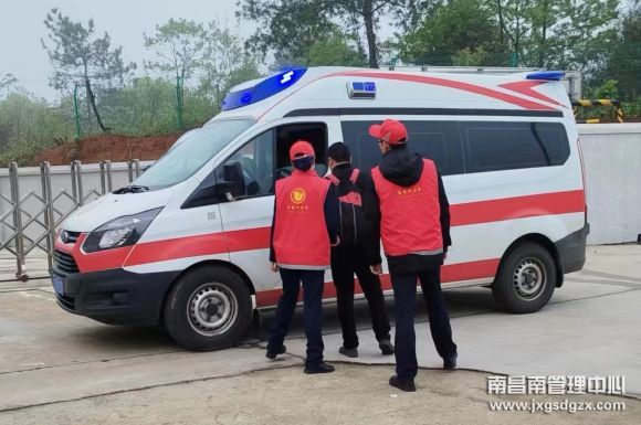 该司机患者上救护车时,对收费站的救助一直道谢。(吴阳阳,占清萍)