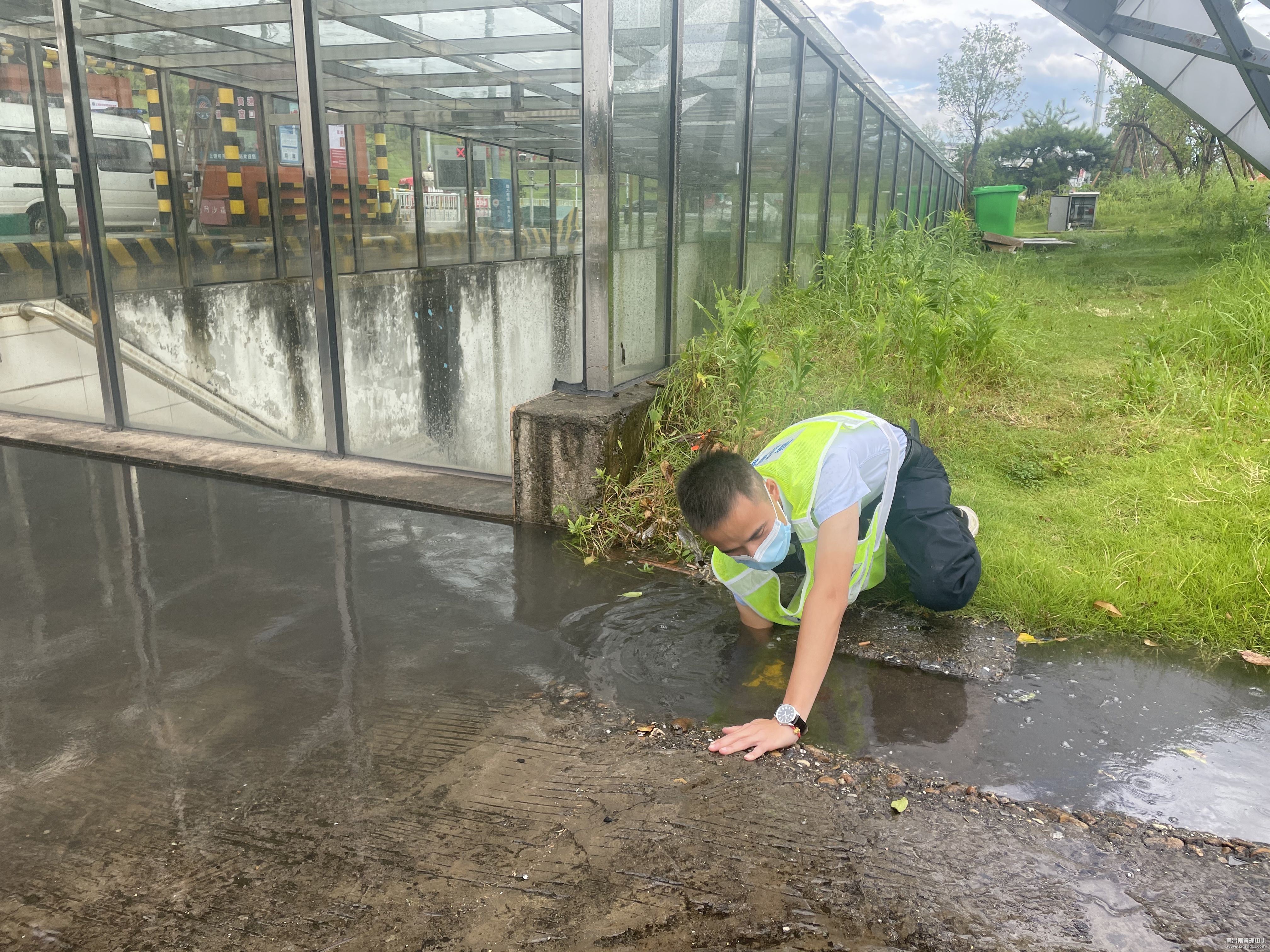 经开区收费站:排水沟堵塞 收费班长冒雨徒手清理