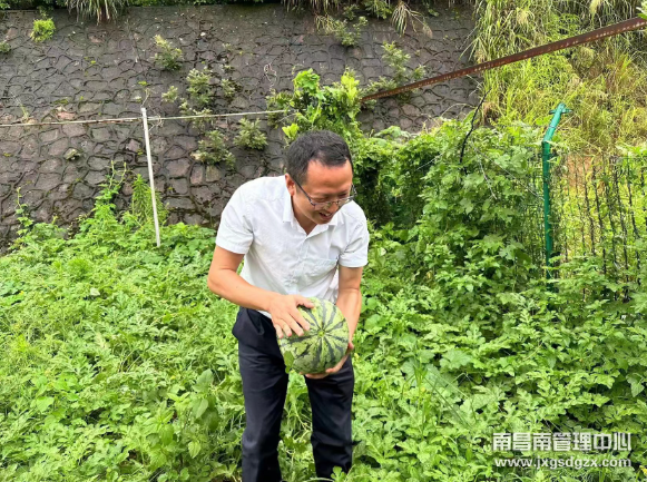 “你听,这个熟了,我们抱走吧”,连日来,在南昌南管理中心余江收费站小院的菜地里,空气里飘浮着西瓜的香甜气息,一个个西瓜在瓜藤和绿叶的遮掩下若隐若现,长势喜人,忙着采摘西瓜的职工们沉浸在丰收的喜悦之中。