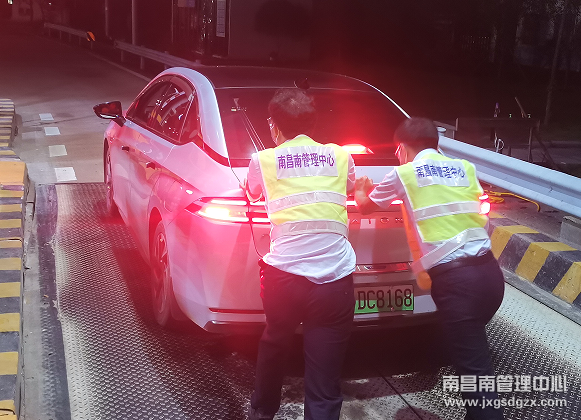 10月18日晚上10时,一辆新能源电动车打着双闪灯停在南昌南管理中心樟树东收费站出口广场,该站当班班长发现后迅速上前查看情况。