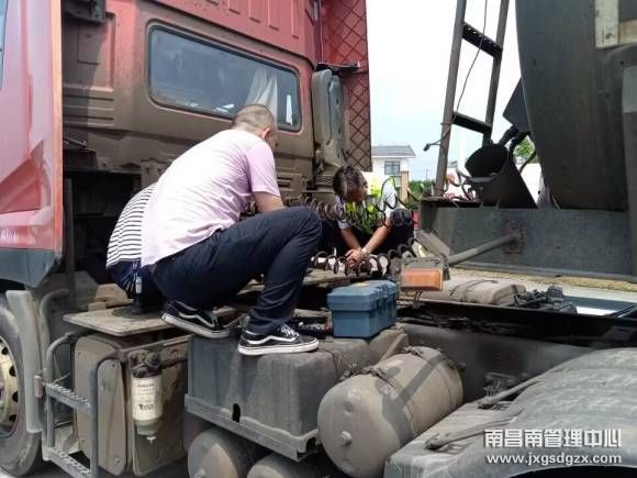 6月4日下午1时许,一辆车牌为赣L56672运输危险品的半挂货车驶入南昌南管理中心双金收费站。当车辆行驶至收费窗口时,该站当班收费人员听到车子发出异常声音,声音像是漏气声,又像是水闸门被打开,哗啦啦的水流声。于是就询问司机:“您的车辆是不是哪里出故障了?刚刚发出了异响。”