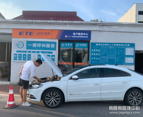 为做好优质便民服务,鹰潭西站以综合服务站为现场服务载体,深入研究车主出行需求,创新提供特色服务—出行安全自检项目,通过发放宣传单和入口告知的方式,让上高速的车主了解检查车况的必要性,对有需要的车主提供安全自检服务,综合服务站配置自检区域、自检设备,安区配备有胎压表、充气泵、手电筒、玻璃水等自检设备。车主可以按照自检清单依次自检,发现隐患及时消除,自检结束后工作人员引导车辆安全行驶上高速。