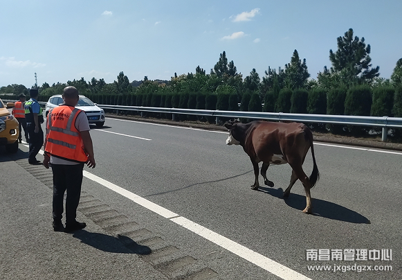 当日11时左右,洛市养护站值班人员接到交警来电,告知往南昌方向34公桩左右出现一头黄牛,正值国庆返程高峰,车流量巨大,严重影响行车安全,排除隐患迫在眉睫。