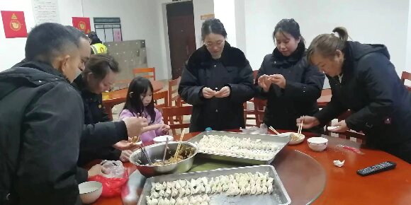 当日晚饭过后,在职工食堂,员工们将提前准备好的饺子皮及调好的馅料拿出。大家热情满满,围在桌前发挥着个人所长,各显身手,有的还让家属小孩参与其中,大家用各自拿手的方式捏出形状各样的饺子。包饺子的过程中,大家有说有笑,不时交流包饺子的技巧和心得,还有人在一旁学习技巧,欢声笑语不断,现场气氛热烈。经过大家的一番努力,两大盘饱满诱人的饺子已经摆放在盘子里了。