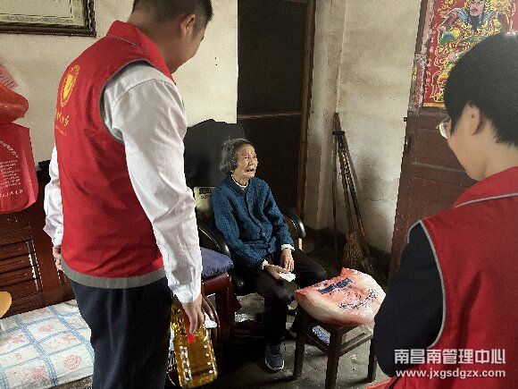 4月18日下午,志愿者来到南昌县富山乡走访慰问孤寡老人、困难老人,为老人们送去米、牛奶、食用油、蛋糕等慰问品。志愿者们围坐在老人身边,与他们亲切交谈,耐心询问日常生活情况和身体健康情况,还帮助整理房间、打扫卫生,在欢声笑语中为老人送去关心关爱。