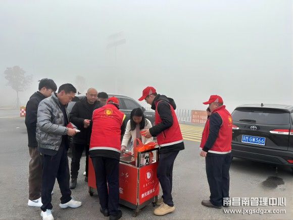 2月10日,大年初一,凌晨突发大雾,南昌南管理中心进贤收费站接通知入口封闭,该站党员示范班的党员们带头,积极开展映山红志愿者服务,为滞留车辆提供面条,面包,开水等物资。
