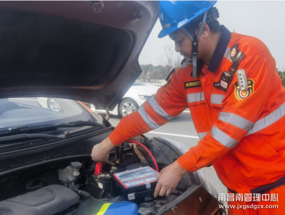 【凝聚春运力量 奋进新的征程】鹰潭中队:车辆“罢工”遇困,救援员“搭电”解难