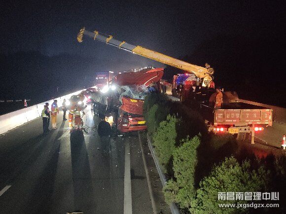 3月13日,南昌南管理中心南昌南车辆救援大队玉山中队高效处置一起半挂车追尾撞护栏事故,快速恢复现场通行,保障道路安全畅通。