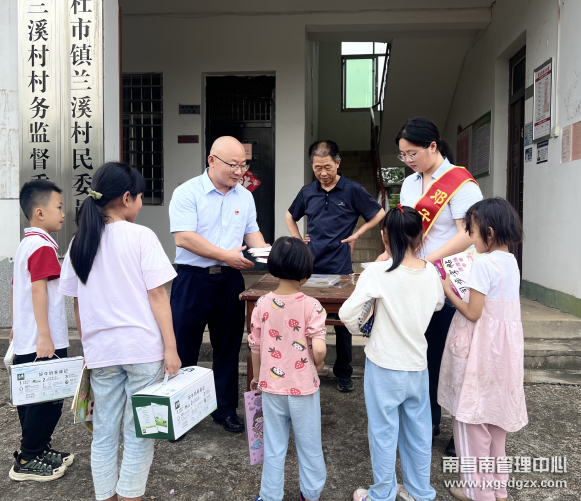 5月29日下午,南昌南管理中心杜市收费站“邓子龙”班组在丰城市杜市镇兰溪村开展“关爱留守儿童 迎六一儿童节”志愿活动。