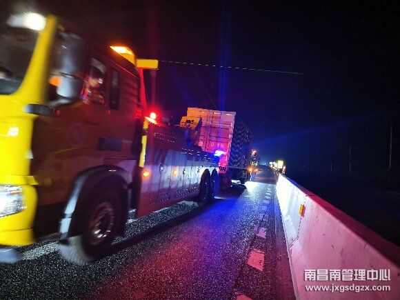7月16日凌晨1时左右,沪昆高速上海方向K638公桩处发生一起货车撞击护栏事故,事故造成行车道中断,超车道缓慢通行。南昌南管理中心南昌南车辆救援大队余江中队值班人员接到救援电话后,立即组织救援力量赶赴事故现场。