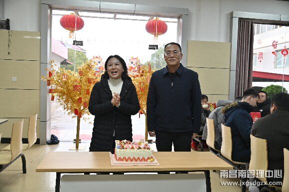 2月4日,小年后上班第一天,南昌南管理中心机关举办春节前聚餐活动。中心党委书记陈苏华、总经理万良红为大家切开象征祝福的蛋糕,中心领导班子向中心全体员工致以新春祝福。