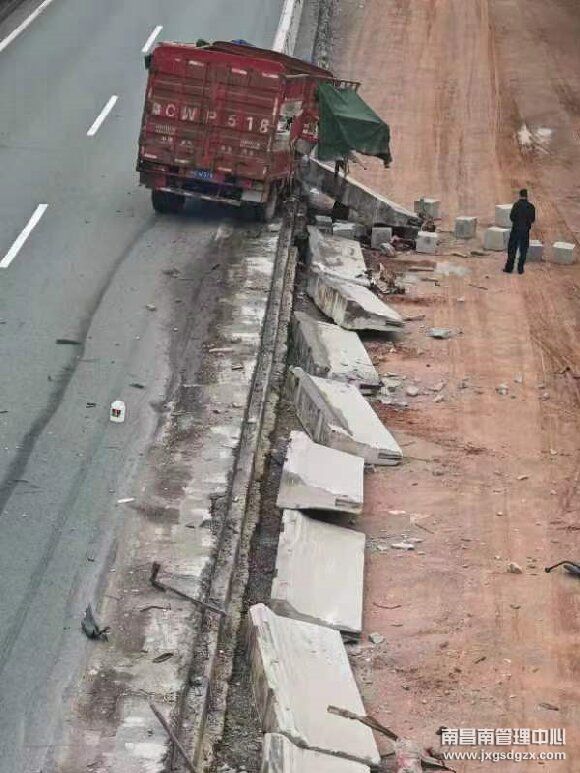 近日,该监测室监测员在巡检时IOC系统报警显示梨温主线K567公桩处往南昌方向有车辆停留,并且出现拥堵情况,随即监测员打开道路视频巡查系统和IOC系统视频进行对比,发现一辆货车撞新泽西墙滞留在行车道上,现场单道缓行,面对密集的车流,驾驶员在车辆后方并没有摆放安全提示标志,人员也未撤离到安全区域,存在很大的安全隐患。