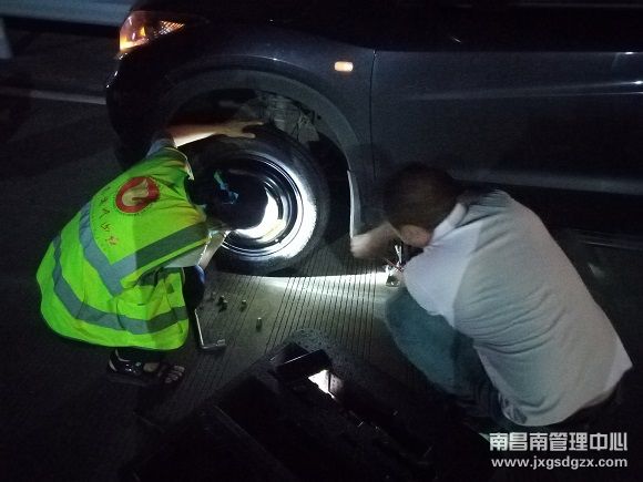9月1日凌晨2点10分,双金收费站班长在入口道发卡后发现一辆轿车的轮胎出了问题。他立刻跑出岗亭,喊住车主并提醒:“师傅,您的车胎有故障。”车主下车检查后发现车子轮胎完全瘪了,无法正常行驶,焦急万分。了解到车主的困境后,收费站工作人员毫不犹豫地迅速行动起来,引导车主将车停在安全区域后,帮助车主找出备胎和工具,蹲在地上和车主一起拆卸故障轮胎,更换备胎。