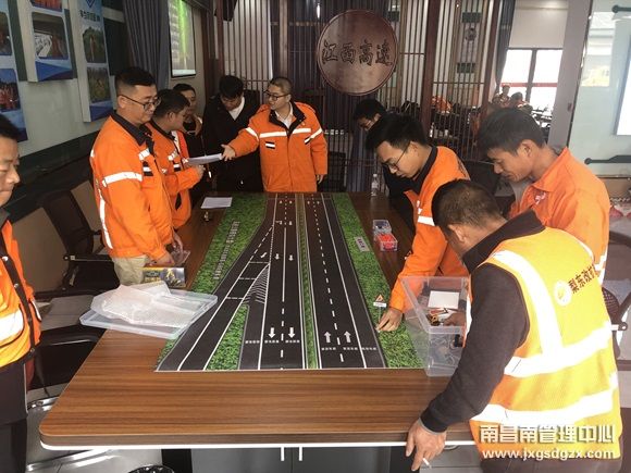 为进一步提升高速公路养护作业的安全生产管理水平,近日,南昌南管理中心东乡养护所组织了一场别开生面的安全生产培训会,采用沙盘演练的方式,通过模拟真实的养护作业场景,让养护人员能够更加直观地了解和掌握安全生产的各项要求。