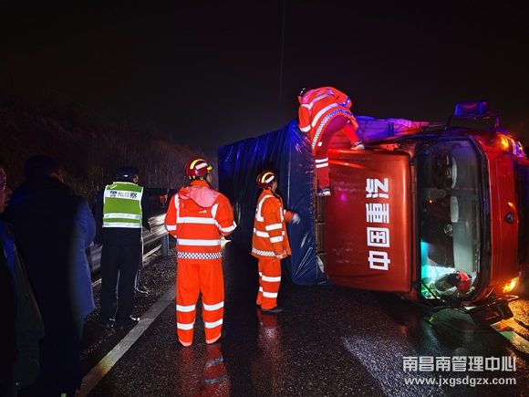 3月6日凌晨2时20分,沪昆高速南昌方向K569公桩处一货车侧翻,占用行车道,南昌南车辆救援大队鹰潭中队接到通知立即出发,20分钟恢复了道路畅通。