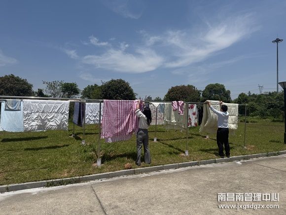 当第一缕阳光初升,上饶经开区收费站的院子里已然热闹非凡。员工们肩扛着刚洗净的衣服和被子步入院落,金属晾衣架在晨光中泛着冷冽的光泽,横杆整齐排列,宛如待检阅的“士兵”。大家欢快地晾晒衣物,嘴角不自觉地扬起微笑。这是三天前新安装的设施,有效解决了以往阳光房空间不足的难题。